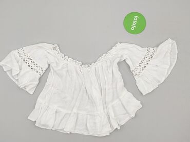 Biała bluzka damska w paski z odkrytymi ramionami. Bluzka charakteryzuje się elastycznym dekoltem typu carmen i rękawami 3/4 z falbanami. Biały materiał ozdobiony jest poziomymi czarnymi paskami, k...