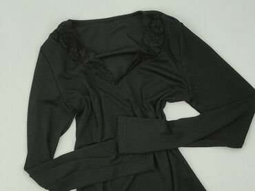 Czarna damska bluzka z długim rękawem i dekoltem w serek (V-neck). Lekka, miękka dzianina – cienki, elastyczny materiał przyjemny w noszeniu. Prosty, lekko dopasowany krój, długość do bioder. Bez n...