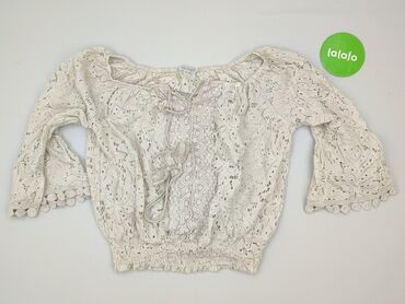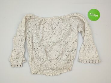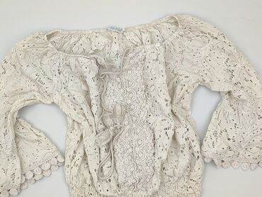 Bluzka damska boho, biała, z koronką - Krój: hiszpanka – dekolt elastyczny, można nosić odkryte ramiona - Rękawy: 3/4, szerokie, w całości z ażurowej koronki o kwiatowym wzorze - Dół: rozkloszowan...Stan:
