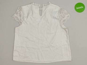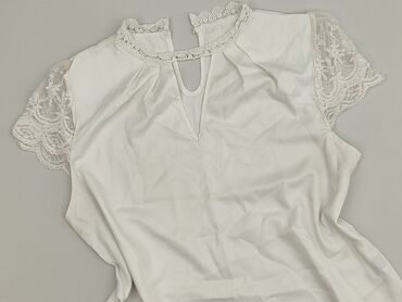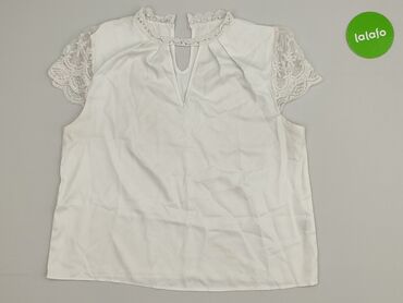 Biała bluzka damska z koronką na ramionach i plecach. - Rozmiar: XXL (widoczne na metce). - Krój: lekko luźny, z okrągłym dekoltem. - Rękawy: 3/4 z mankietem. - Materiał: cienka, przewiewna dzi...
