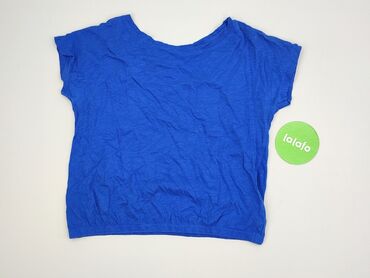 Bluzka damska z krótkim rękawem w intensywnym kobaltowym kolorze. - Krój: luźny, z lekko opadającymi rękawkami - Dekolt: w kształcie litery V z dwoma małymi guzikami przy dekolcie - Dół: krótkie r...Stan:
