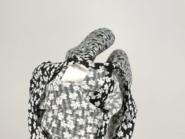 Bluzka damska z dekoltem karo i rękawem 3/4 - Wzór: czarno‑biały, roślinny/grafyczny - Krój: lekko rozszerzana, swobodna, z marszczeniem przy dekolcie i na rękawach - Dekolt: szeroki, prostokątny (...