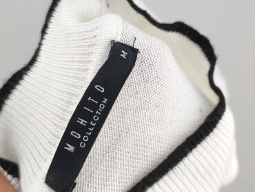 Bluzka damska MOHITO, rozmiar M. - Kolor: biały - Krój: luźniejszy, z obniżoną linią ramion i krótkim rękawkiem typu cap - Dekolt: łódka - Ozdoby: drobne, srebrne dżety rozmieszczone na całym przo...Stan: