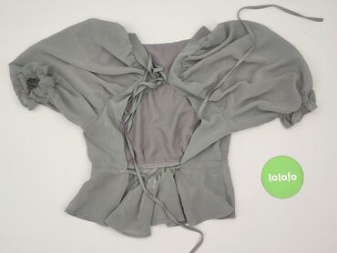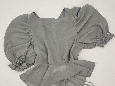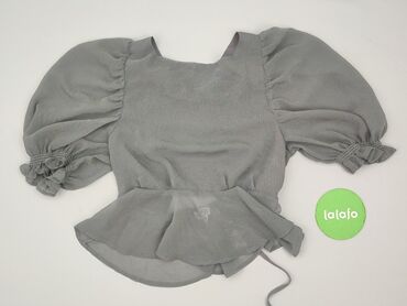 Bluzka damska z krótkim rękawem w delikatny, drobny prążek (jasnoszare paski). - Dekolt w kształcie litery V. - Rękawy bufiaste z marszczeniem przy ramionach. - Krój prosty, lekko dopasowany. -...