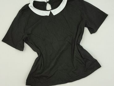 Bluzka damska Sinsay, rozmiar S. - Kolor: czarny z delikatnym, drobnym nakrapianiem - Kołnierzyk: kontrastowy, biały w stylu „Peter Pan” - Krój: prosty, lekko luźny, krótkie rękawki - Zapięcie: ma...