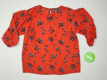 Elegancka bluzka damska Primark z długimi rękawami, idealna do noszenia na co dzień. Charakteryzuje się okrągłym dekoltem i subtelnym wzorem w drobne, białe kwiaty z czerwonymi akcentami na ciemnym...