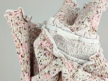 Bladoróżowa bluzka damska bez rękawów - Krój: prosty, lekko luźny, długość do bioder - Dekolt: w kształcie litery V - Rękawy: krótkie, z podwójnymi falbanami na ramionach - Materiał: 95% poliester...Stan: