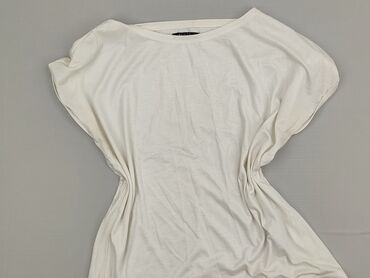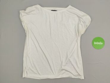 Bluzka damska MOHITO, rozmiar M. - Kolor: biały - Krój: luźniejszy, z obniżoną linią ramion i krótkim rękawkiem typu cap - Dekolt: łódka - Ozdoby: drobne, srebrne dżety rozmieszczone na całym przo...