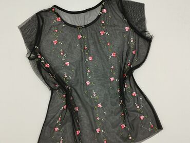 Bluzka damska z lekkiej, półprzezroczystej siateczki - Krój: luźny, z krótkim rękawkiem i okrągłym dekoltem - Materiał: delikatna, przewiewna tkanina siateczkowa (transparentna) - Wzór: duże kwiat...