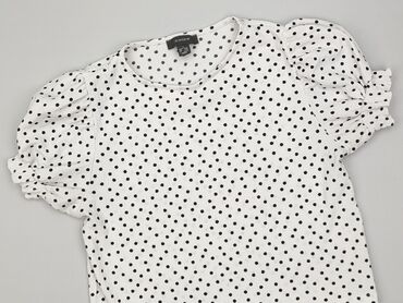Bluzka damska PRIMARK - Model: krótka bluzka z dekoltem w kształcie serka - Kolor/wzór: biała w drobne czarne kropeczki (polka dots) - Rękawy: bufiaste, półtransparentne, zakończone delikatną gumk...