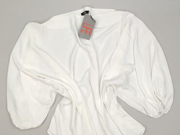 Bluzka damska WOMEN, rozmiar S - Kolor: biały z subtelnym, roślinnym wzorem w odcieniach bieli/szarości (efekt ażurowy – półprzezroczysta tkanina wierzchnia). - Krój: luźny, nietoperzowe rękawy do...