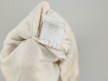 Bluzka damska z krótkim rękawem typu kimono, w kolorze ecru/śmietankowym. Przód zdobi duży, brzoskwiniowy okrąg z nadrukiem gałązek i kwiatów w odcieniach różu, zieleni i czerni – motyw inspirowany...