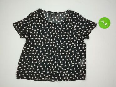 Bluzka damska RESERVED, rozmiar XL. - Kolor: czarny w białe groszki - Krój: prosty, z okrągłym dekoltem - Rękawy: bufiaste, o długości 3/4 - Materiał: 90% bawełna, 8% poliester, 2% elastan – przyj...