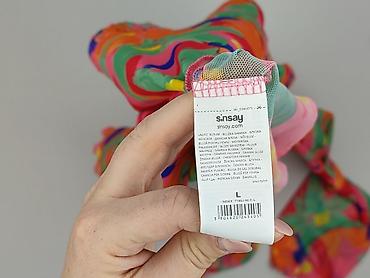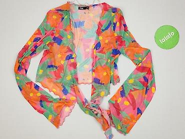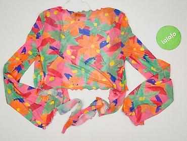 Ten damski crop top marki Sinsay w rozmiarze L to stylowy element garderoby. Wykonany z 95% poliestru i 5% elastanu, zapewnia lekkość i elastyczność. Charakteryzuje się wielokolorowym, kwiatowym wzorem oraz wiązaniem z przodu, co pozwala na regulację dopasowania. Długie rękawy i krótki fason sprawiają, że idealnie nadaje się do noszenia jako narzutka lub uzupełnienie letnich stylizacji.