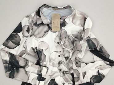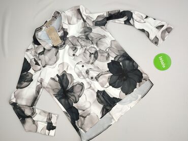 Bluzka damska w kwiaty - Krój koszulowy z klasycznym kołnierzykiem i zapięciem na guziki z przodu - Długie, bufiaste rękawy zakończone gumką przy mankietach - Wzór: wielobarwny, gęsty motyw kwiato...Stan: