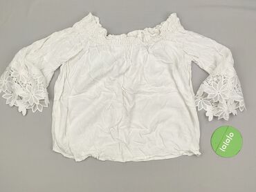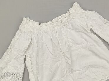 Bluzka damska z hiszpańskim dekoltem - Kolor: biały - Fason: luźny, prosta linia; dekolt typu hiszpanka z elastyczną gumką wokół ramion - Rękawy: krótkie, z dekoracyjnymi zakładkami - Materiał: 70...