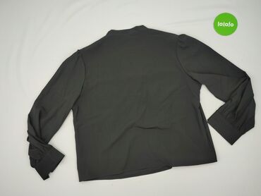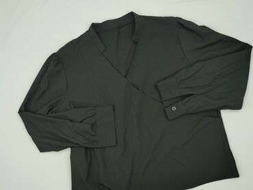 Bluzka damska z długim rękawem, grafitowa/czarna, kopertowy przód. - Krój: lekko pudełkowy, z kopertowym wykończeniem przodu i dekoltem w kształcie litery V - Rękawy: długie, z marszczeniami przy ...