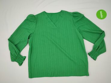 Bluzka damska, rozmiar XXL - Fason: kopertowy przód z zakładką, dekolt w kształcie litery V - Rękawy: długie, bufiaste u góry, szerokie mankiety zapinane na guzik - Kolor: ciemna zieleń/oliwka - Ma...