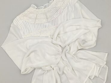 Biała bluzka damska z długim rękawem - Lekka, przewiewna tkanina o delikatnej, pionowej fakturze (miękko układający się materiał). - Ozdobne, poziome wstawki z koronki/ażuru z przodu i na obwodzie...
