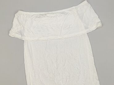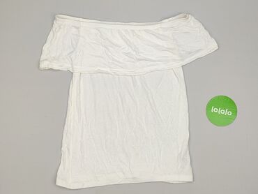 Biała bluzka hiszpanka z krótkim rękawem - Krój: hiszpanka/łódkowy dekolt z gumką dookoła, bufiaste krótkie rękawy, dół zakończony gumką tworzącą delikatne marszczenie - Materiał: 95% wiskoza, 5% ...