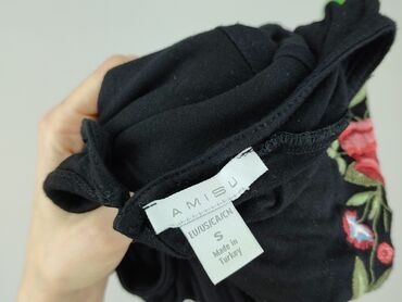 Bluzka damska AMISU - Kolor: czarny z kontrastowym, kremowym haftem - Fason: luźna bluzka/tunika z długim rękawem, delikatnie odcinana w talii (gumka/ściągacz), lekko rozszerzana ku dołowi - Dekol...