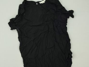 Czarna bluzka damska H&M - Krój: prosty, lekko taliowany, zaokrąglony dół - Rękaw: krótki, kimonowy - Dekolt: okrągły z pęknięciem na plecach zapinanym na guzik - Materiał: cienka, miękka tkanina ...