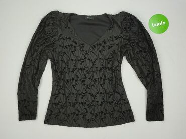 Atutem jest dekoracyjna faktura materiału oraz kobiecy dekolt, dzięki czemu bluzka dobrze łączy się zarówno ze spódnicą, jak i spodniami. Dla kobiet. Używana.