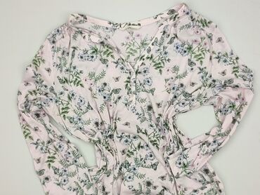Bluzka H&M damska, rozmiar XS. - Krój: długi rękaw, dekolt w serek z krótką listwą guzikową (3 guziki), zaokrąglony dół - Wzór: delikatny, botaniczny print – kwiaty, liście, motyle na jasnoróżowym...Stan: