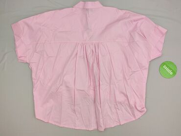Lekka bluzka damska z krótkim rękawem - Kolor: bardzo jasny róż (pastelowy) - Krój: luźny, wydłużony tył z zaokrąglonym dołem - Dekolt: stójka z rozpinaną listwą na 4 guziki w kolorze różowym - Rę...