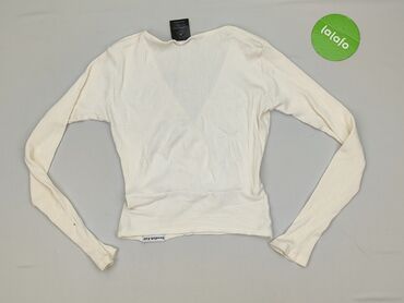 Bluzka z długim rękawem, kremowa/ecru, w bardzo drobne pionowe prążki. - Fason: dopasowany, z delikatnie podwyższoną stójką (półgolf). - Rękawy: długie, proste. - Materiał: elastyczna dzianina p...