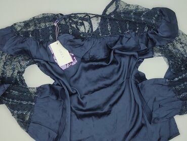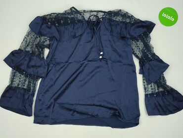 Bluzka damska Lilla – granatowa, z połyskiem i koronkowymi rękawami