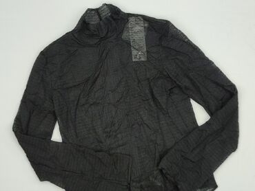Bluzka damska z długim rękawem, czarna, z efektem „2 w 1”. - Góra i rękawy z półprzezroczystej siateczki w geometryczny, flockowany wzór (miękki aksamitny nadruk). - Przód z kryjącym panelem w kszt...Stan: