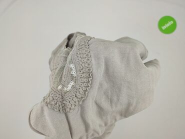 Bluzka damska z koronką, kolor jasnoszary. - Fason: luźny, z okrągłym dekoltem - Rękawy 3/4 z ażurowej koronki o kwiatowym wzorze - Przód częściowo pokryty koronką, tył gładki dzianinowy (melanż) ...