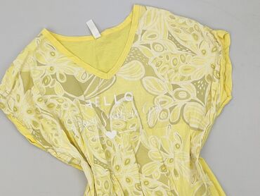 - Wzór: kwiatowo-roślinny print w bieli i jasnej żółci; z przodu napis „HELLO” oraz drobny nadruk „Sunny/Sunshine Girl” z serduszkiem