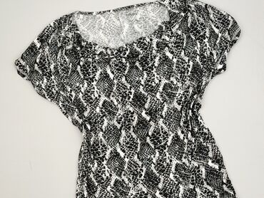 - Krój: luźniejsza góra, delikatnie taliowana, krótkie rękawki typu kimono