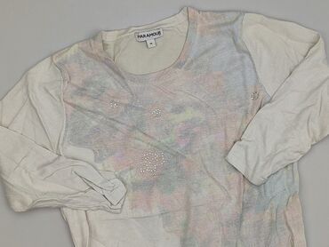 Biała bluzka damska BELoved Woman, rozmiar M. - Krój: luźny, z długim rękawem i okrągłym dekoltem - Ozdoby: subtelne, rozmieszczone na przodzie drobne aplikacje/kamienie, nadające delikatny połysk...