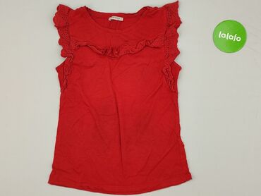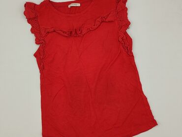 Bluzka damska Orsay, bez rękawów, kolor intensywnej czerwieni. Model z falbankami i ażurowymi wstawkami przy ramionach oraz na karczku z przodu, okrągły dekolt. Lekka, miękka dzianina – przyjemna w dotyku, idealna na lato lub pod żakiet.