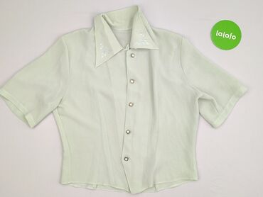 Koszula damska w jasnym odcieniu zieleni, ozdobiona czarnym wzorem w gałązki z kwiatami. Model charakteryzuje się krótkimi rękawami, klasycznym kołnierzykiem i zapięciem na guziki z przodu. Fason j...