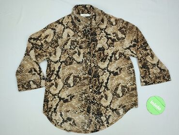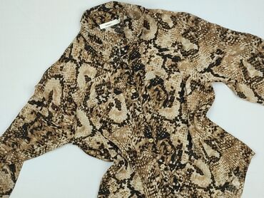 Bluzka damska MOHITO, rozmiar M - Wzór: panterka (beż/czerń) - Fason: dopasowany korpus, dekolt w kształcie serca/kwadratu, długie bufiaste rękawy - Materiał: elastyczna dzianina o lekko marszczone...