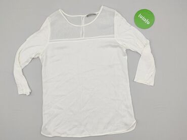 Bluzka damska z długim rękawem, biała, z koronką - Krój: prosty, lekko luźny, okrągły dekolt - Rękawy: długie - Zapięcie: półguziki z tyłu pod szyją - Detale: bogate, ażurowe wstawki koronkowe z p...