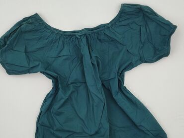 Bluzka damska w kolorze turkusowym - Fason: luźny, z marszczeniami przy dekolcie - Dekolt: okrągły, z elastyczną gumką (możliwość noszenia klasycznie lub lekko opuszczone na ramiona) - Rękawy: kró...