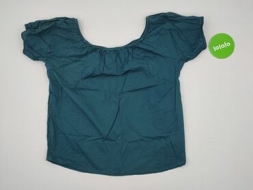 Turkusowa bluzka damska z satynowym połyskiem, rozmiar 2XL. - Fason: luźny, lekko rozszerzany, z dekoltem w serek - Rękawy: krótkie, z wycięciem „cold shoulder” odsłaniającym ramiona - Ozdoby: kor...