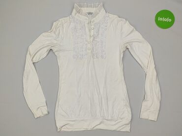 Biała bluzka damska BELoved Woman, rozmiar M. - Krój: luźny, z długim rękawem i okrągłym dekoltem - Ozdoby: subtelne, rozmieszczone na przodzie drobne aplikacje/kamienie, nadające delikatny połysk...