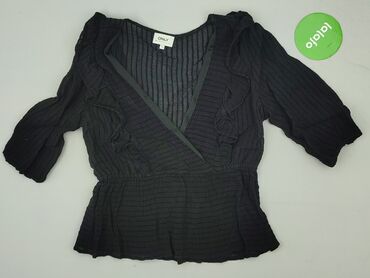 Bluzka damska ONLY, rozmiar 36. - Kolor: grafitowa/czarna z subtelnym, pionowym pasem (połysk–mat) - Fason: lekko luźny, z podkreśloną talią - Rękawy: długie, z dekoracyjnymi przeszyciami; na rami...Stan: