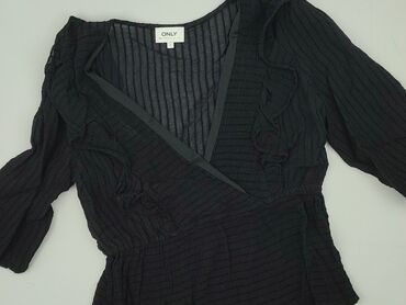 Bluzka damska ONLY (Blue Denim), rozmiar L. - Krój kopertowy z głębokim dekoltem V - Marszczona, lekko kreszowana tkanina z delikatnym prążkowaniem - Kolor: beżowy/neutralny - Rękawy 3/4 z lekkim ...