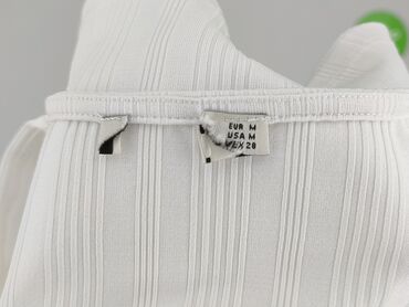 Bluzka damska z koronkowymi rękawami - Rozmiar: M - Kolor: biały - Krój: klasyczny, prosty tułów, dekolt w serek (V-neck) - Rękawy: długie, z prześwitującego tiulu z kwiatowym haftem; przy mankiet...