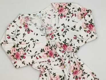 Bluzka damska AMISU, rozmiar M - Fason: dopasowany, z dekoltem w kształcie łódki/zaokrąglonym - Rękaw: długi - Wzór: kwiatowy na białym tle (odcienie ceglasty/rudy, beż, zieleń) - Materiał: elasty...