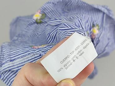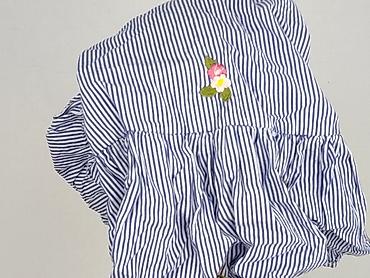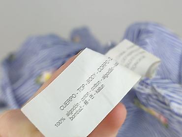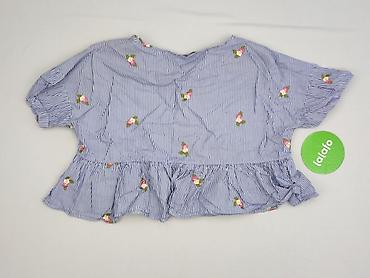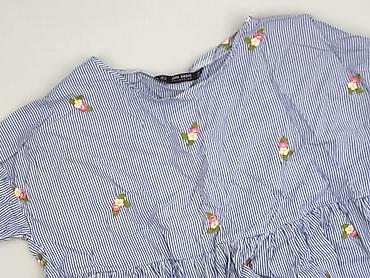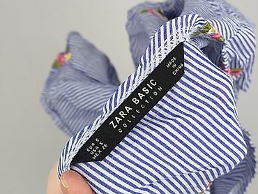 Bluzka ZARA BASIC - Model: bluzka w paski z ażurowym haftem - Kolor: biel z niebieskimi cienkimi paskami - Wzór: haftowane ażurowe kwiatki/gałązki na całej powierzchni - Krój: luźny, lekko rozszer...