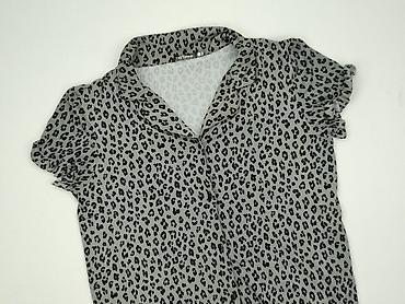 Bluzka damska w panterkę - Wzór: leopard print (czarno‑szare cętki na jasnym tle) - Fason: koszulowa bluzka/tunika z długim rękawem - Dekolt w serek z listwą guzikową (ozdobne guziki z przodu) - T...Stan: