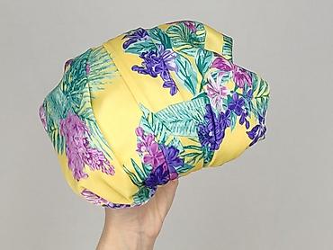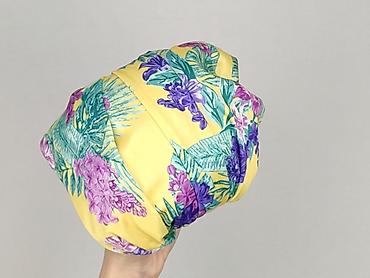 - Wzór: tropikalny kwiatowo-liściasty w odcieniach fioletu, różu i zieleni na żółtym tle